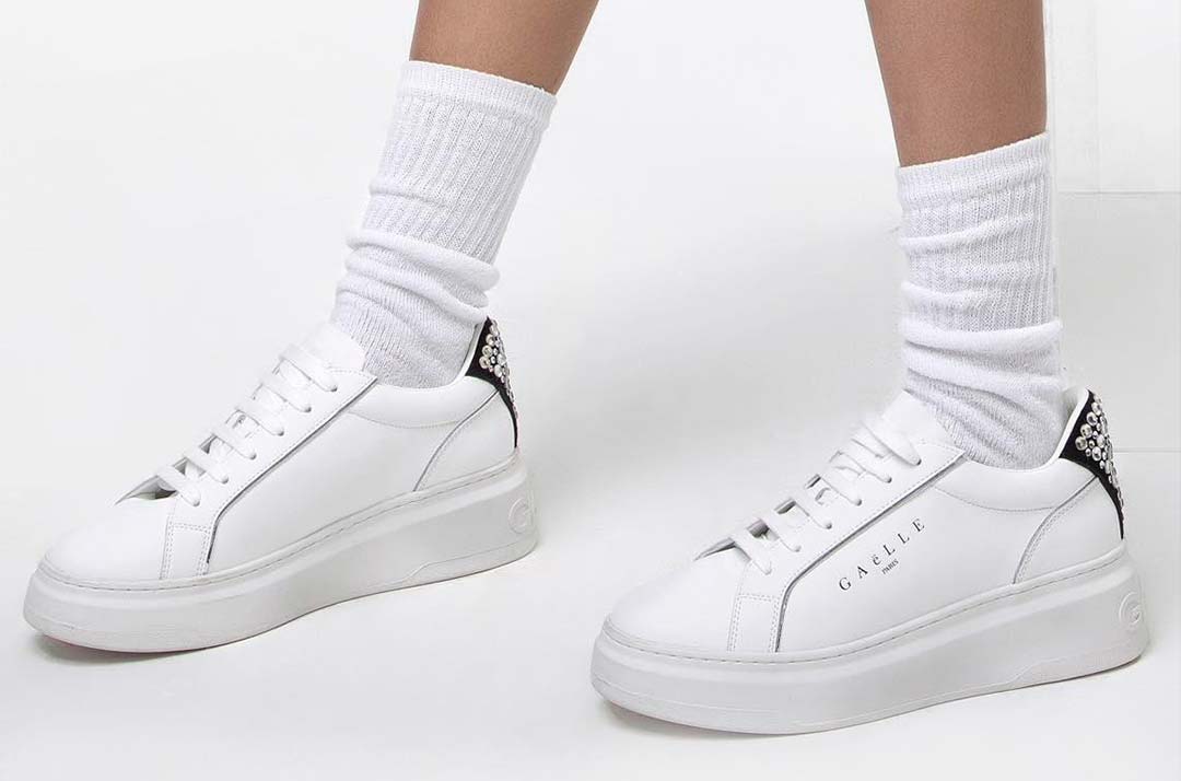 Sneakers Gaelle in Pelle Bianca - Logo e Tallone Nero