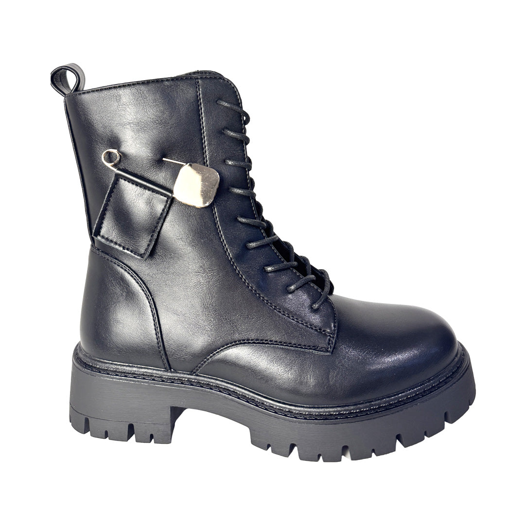 Anfibio Nero Stringato Carrarmato | Con Spilla Oro Removibile