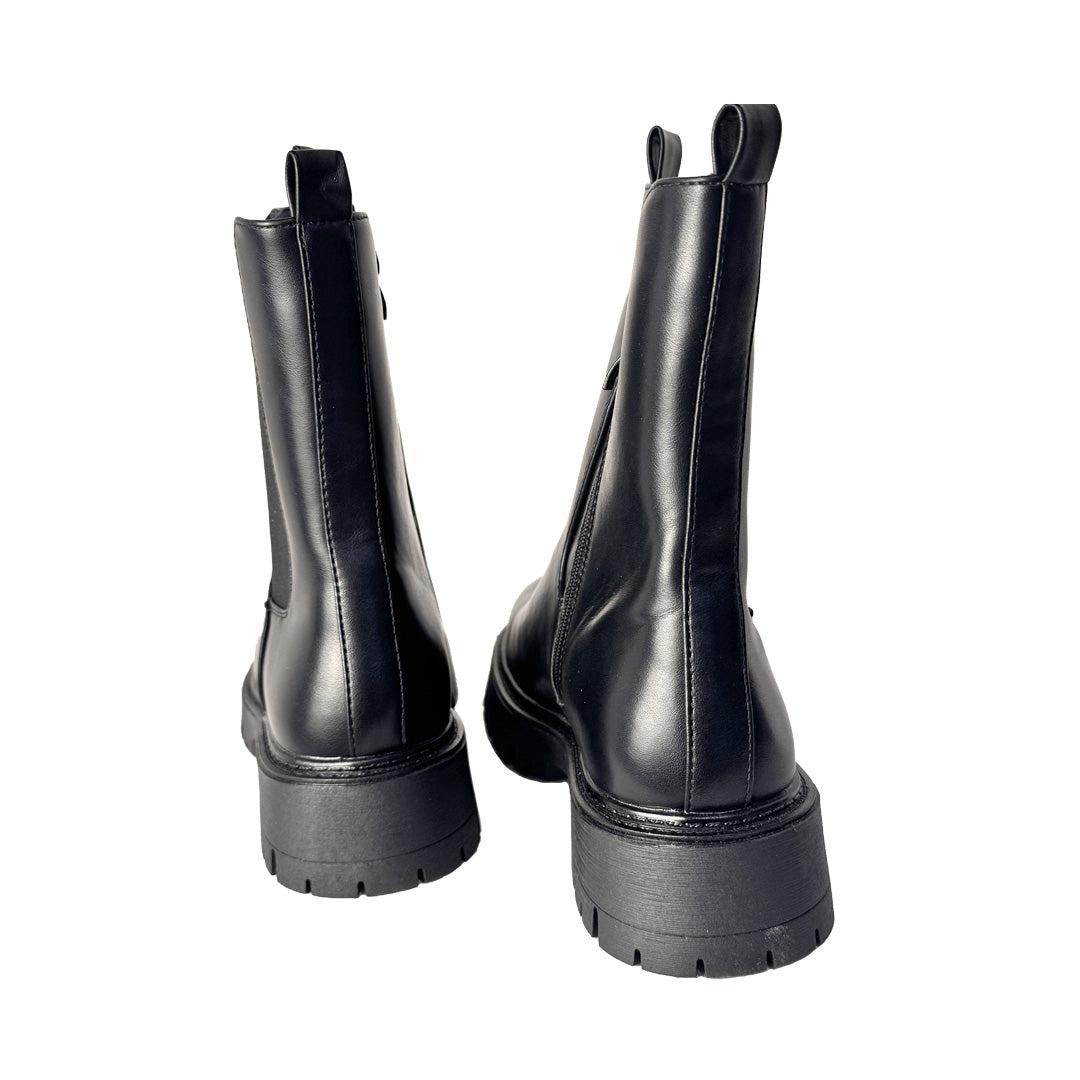 Questi stivaletti in ecopelle nera sono un classico rivisitato: mantengono la comodità delle bande elastiche laterali tipiche dei Beatles per una calzata immediata, ma si trasformano grazie a una suola decisamente moderna. La base in gomma carrarmato non solo offre un grip eccellente, ma aggiunge un tocco audace e grintoso al tuo look.