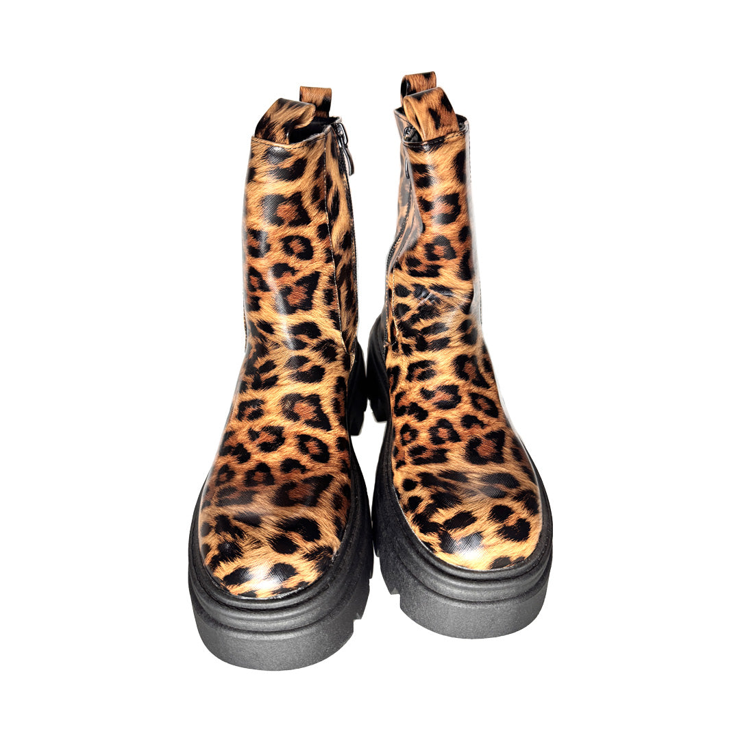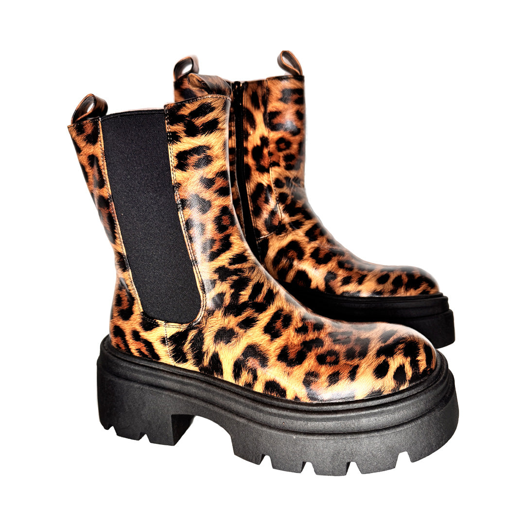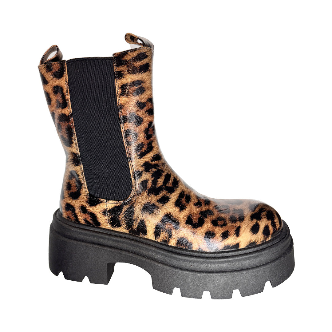 Eleva il tuo look quotidiano con un tocco graffiante. Questi beatles firmati Rosso di Sera fondono l’eleganza dell'animalier con l'anima rock della suola carrarmato nera. Caratterizzati da una silhouette slanciata con altezza 10 cm, offrono il perfetto equilibrio tra grinta e femminilità. Le bande elastiche laterali tono su tono garantiscono una calzata pratica e aderente. Ideali da abbinare a un total black o a un denim oversize per non passare mai inosservata.
