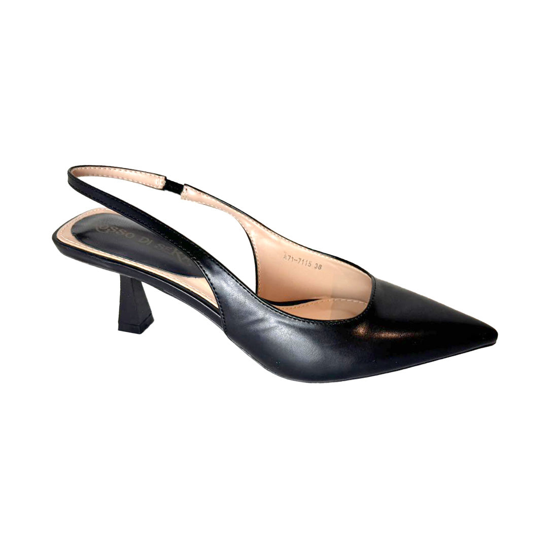L'eleganza quotidiana firma Rosso di Sera. Questa calzatura modello Chanel è l'accessorio indispensabile per chi cerca uno stile raffinato senza rinunciare alla praticità. Realizzata in morbida ecopelle nera dalla finitura impeccabile, presenta un design pulito che si adatta a ogni outfit. Il tacco di 50 mm offre il sostegno ideale per affrontare l'intera giornata, dall'ufficio all'aperitivo, garantendo una camminata fluida e confortevole. Un classico intramontabile reinterpretato per la donna moderna.