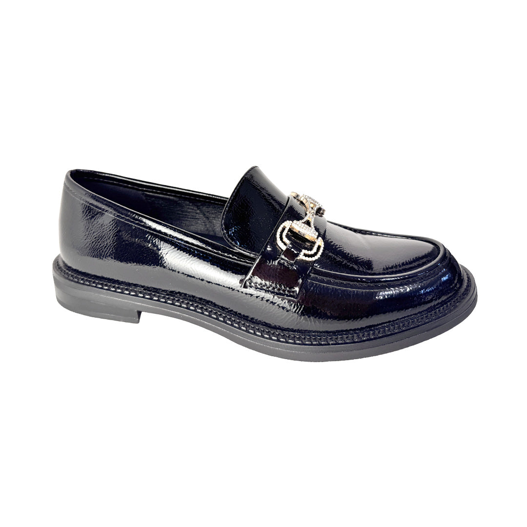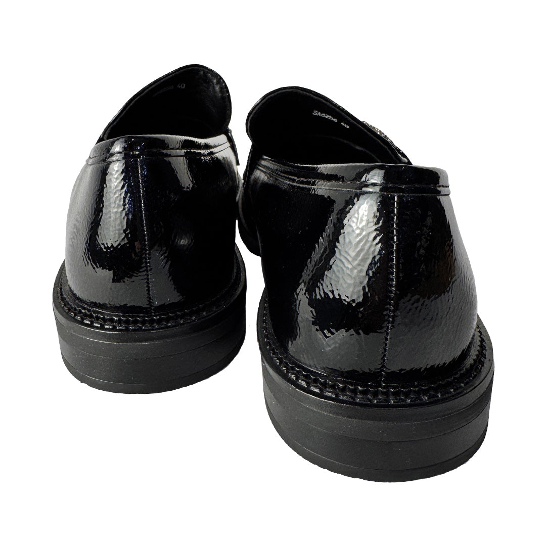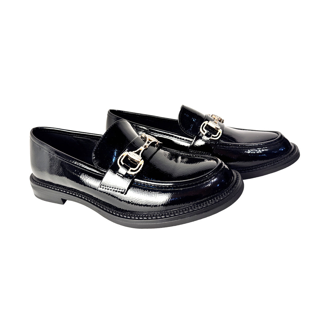 Mocassini Donna in Vernice Nera con Catena Strass Oro – "Rosso di Sera"