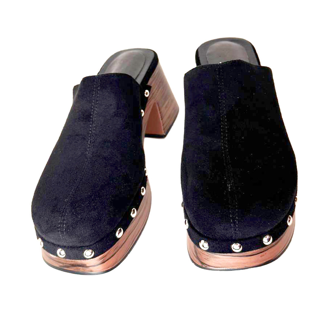 Sabot nero "Rosso di Sera" in Camoscio e Borchie - Tacco Effetto Legno 7cm