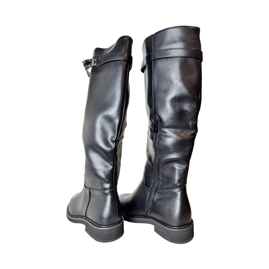 Stivale Donna Kharisma Alto Nero | Cinturino con Chiave | Zip Interna