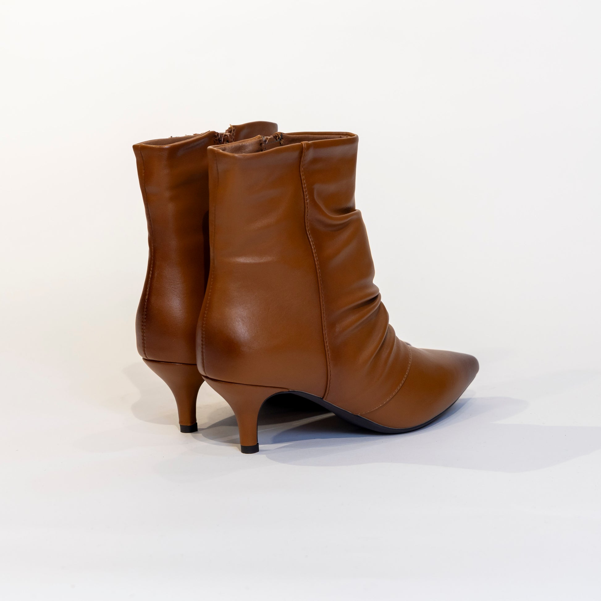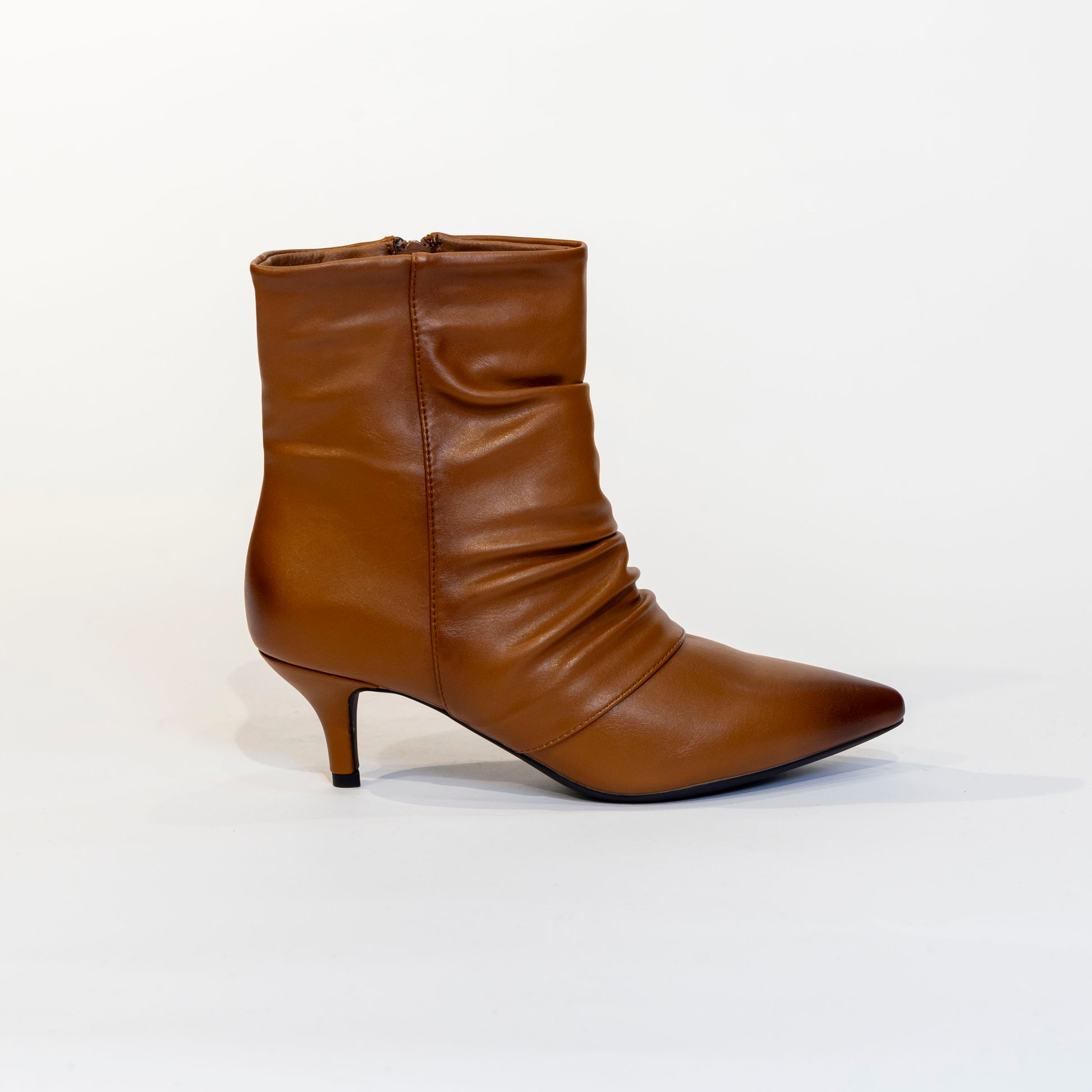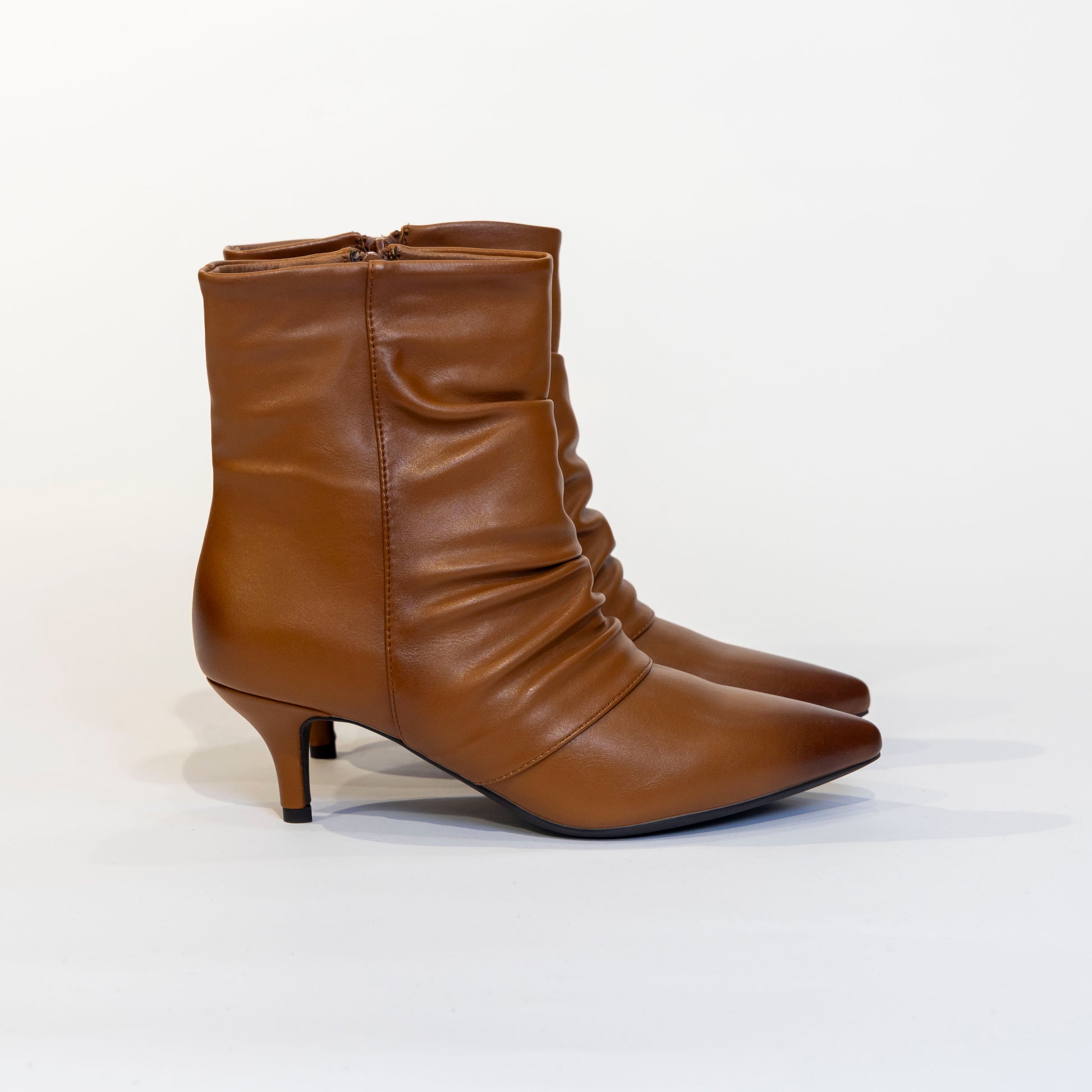 tronchetto arricciato,color cuoio,tacco 30 ,ecopelle
