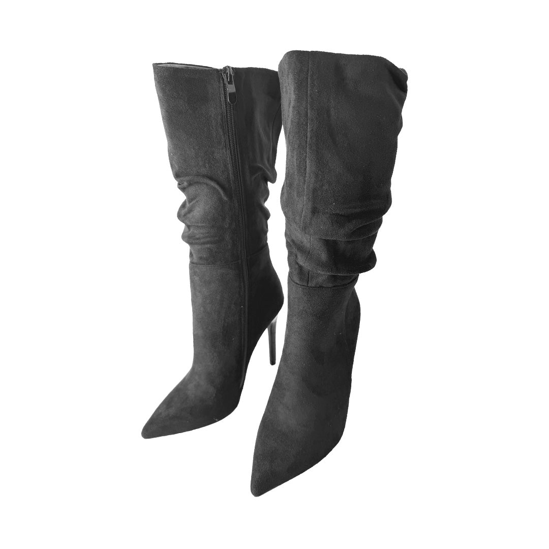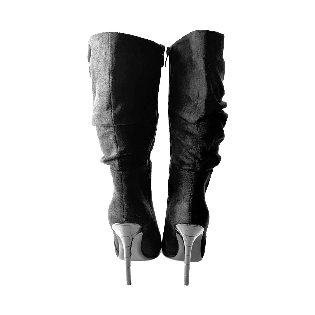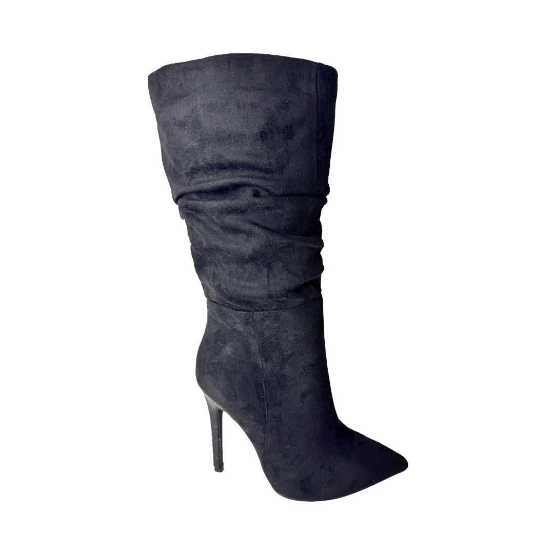 Tronchetto Donna Rosso di Sera in Camoscio Nero - Tacco Fantasia Cocco